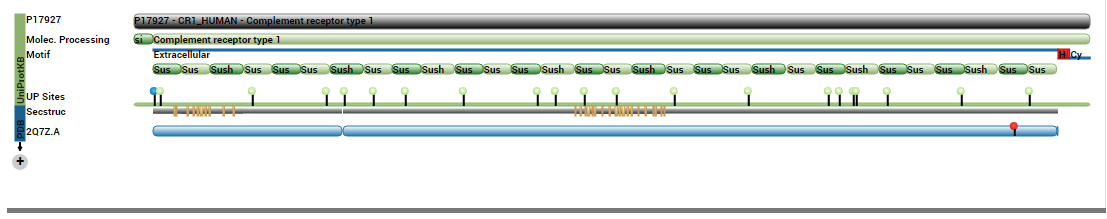 Focando nos resultados da primeira ferramenta, verifica-se a existência de folhas beta (riscas verticais amarelas) e a inexistência de hélices alfa. Verifica-se que a maioria da proteína se encontra sob a forma de enrolamentos (coil). Os resultados da segunda ferramenta vão de encontro aos primeiros, na medida em que as probabilidades de ocorrência de hélices alfa são muito reduzidas, enquanto que a probabilidade de existência de folhas beta é superior a 0,5 em certas partes da proteína. Quanto à probabilidade de obter enrolamentos na estrutura secundária, esta é bastante elevada e superior a 0,5 em grande parte da proteína. Estes segundos podem ser consultados no documento PDF abaixo.